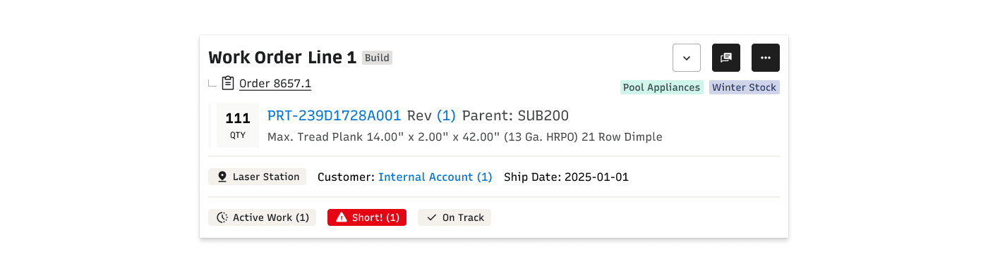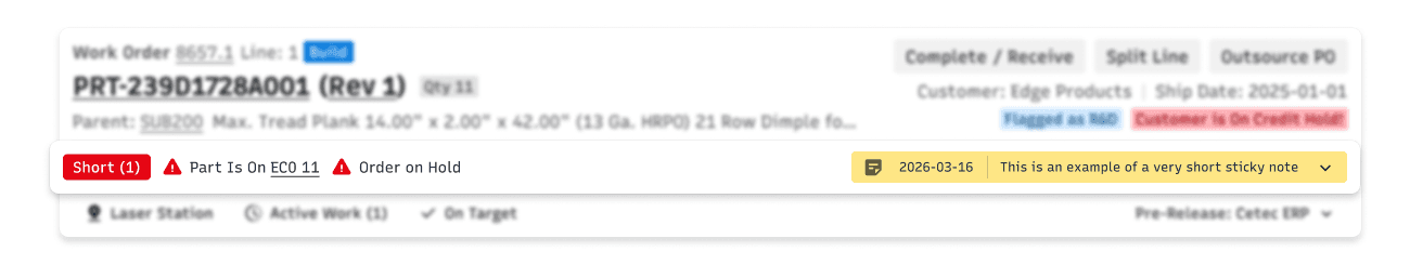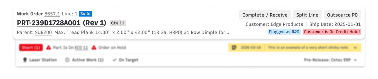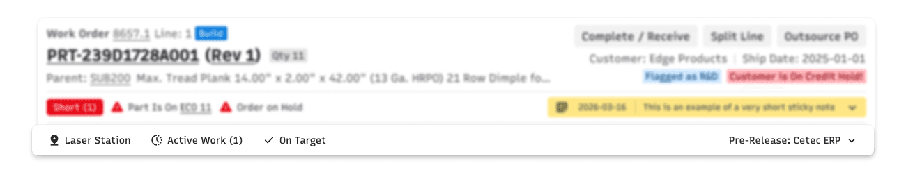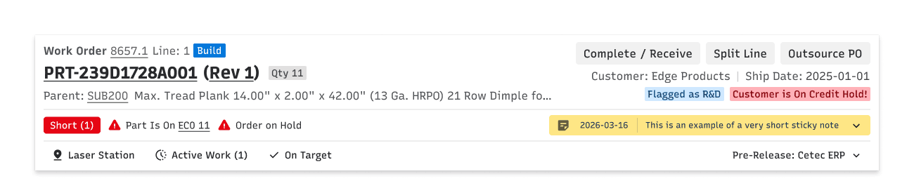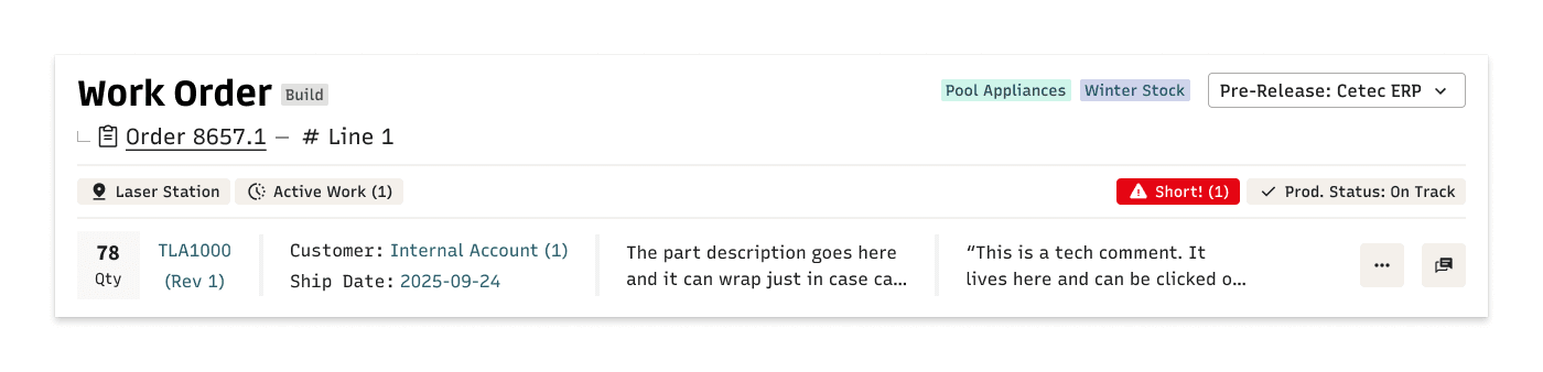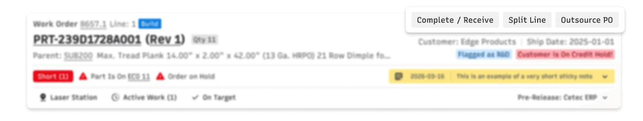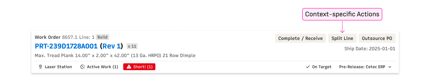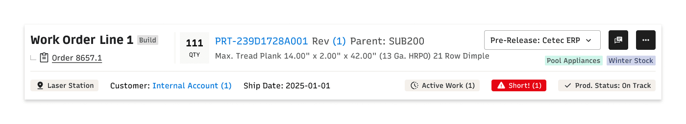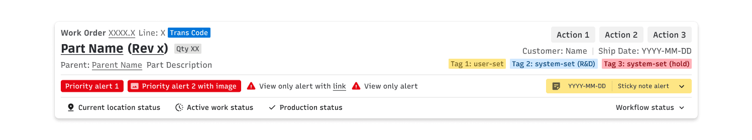 Static information about parts and customers sat alongside dynamic status and alert information without clear differentiation. Alert information was not consistent, either in content or placement. So many opportunities for improvement!