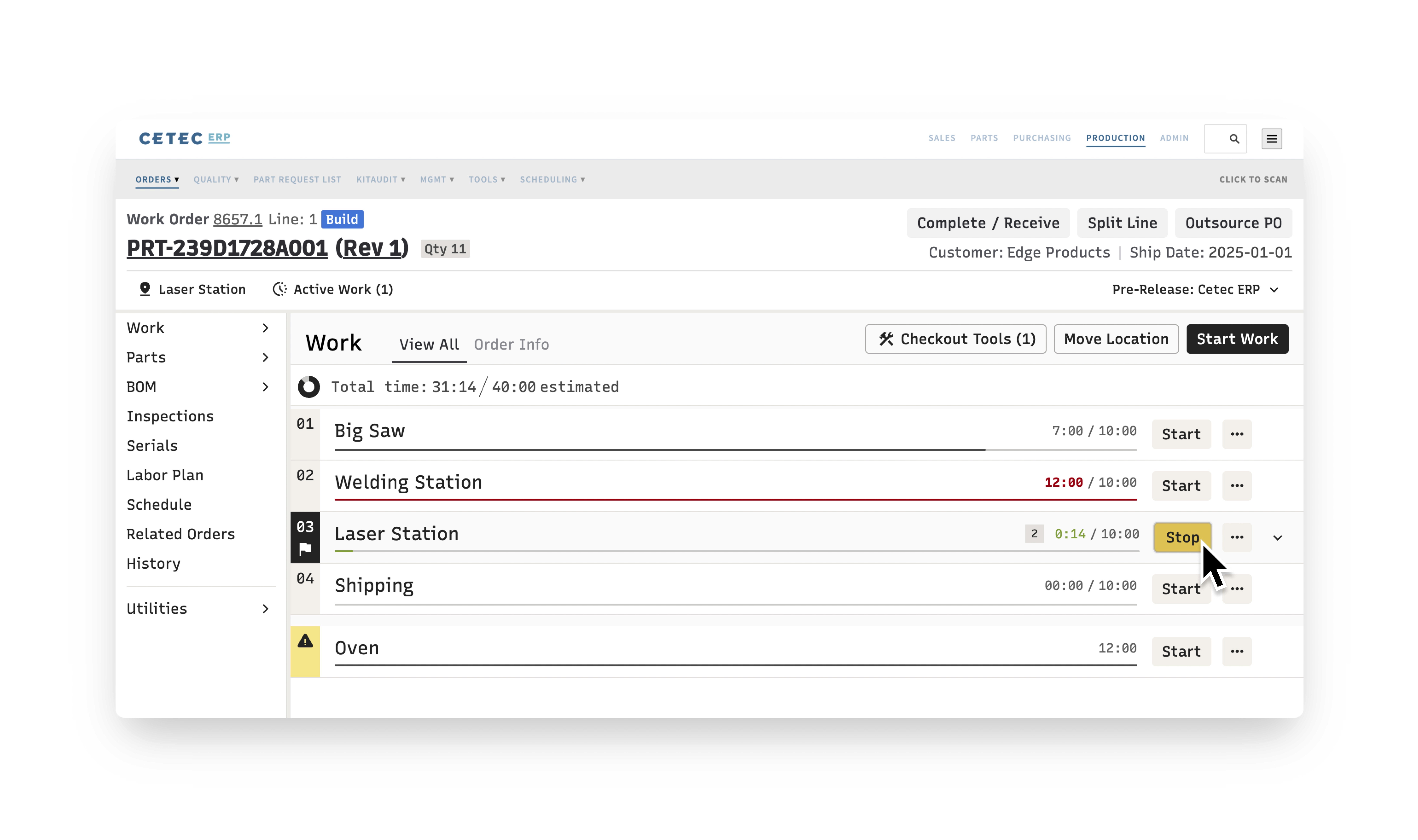 The Work Order is one of Cetec’s most-used pages. It's like a recipe, punch card, and progress tracker all in one place.