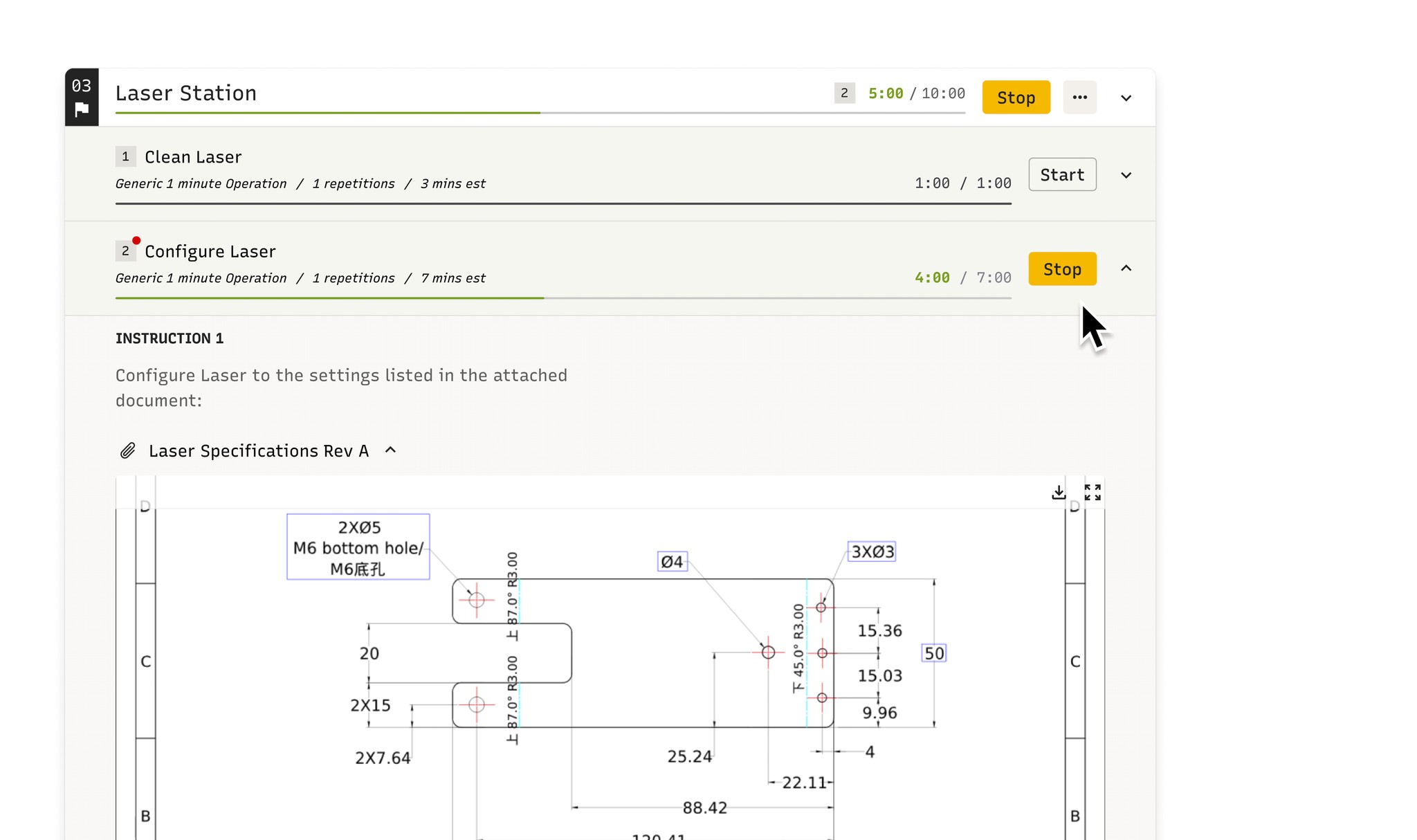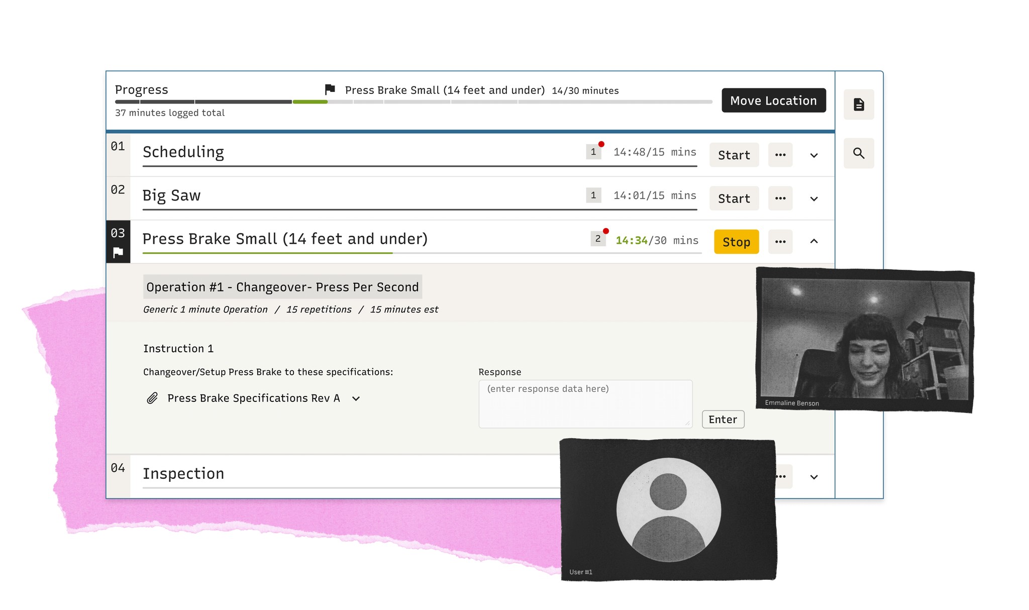 Managers couldn't quickly track progress or see a part's location on the floor. Floorworkers often opened multiple tabs to follow instructions.